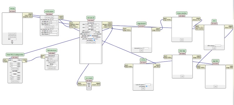 Ps: they are built to interact with as functions. You literally pull the output from one box and drag it into the input of another. Import the first image, set the cut depth and offset. High offsets might result in a broken pcb, specialy if the machine is not super duper good. 2 is an average offset. Click calculate and check the design